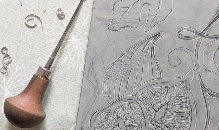 Printmaking found me during the pandemic, when I started carving lino at the kitchen table as a way to slow down and find some calm in the chaos of everyday life. What began as a quiet creative experiment has since grown into something I can't imagine living without. These days, printmaking is woven into my daily routine, and I wouldn't have it any other way.