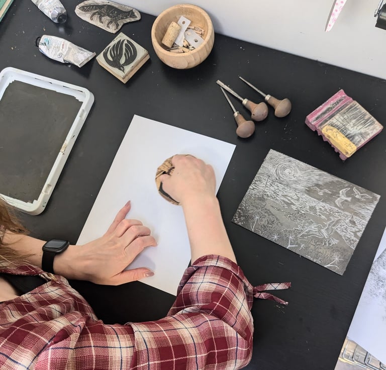 Linocut prints and workshops, Essex, UK.